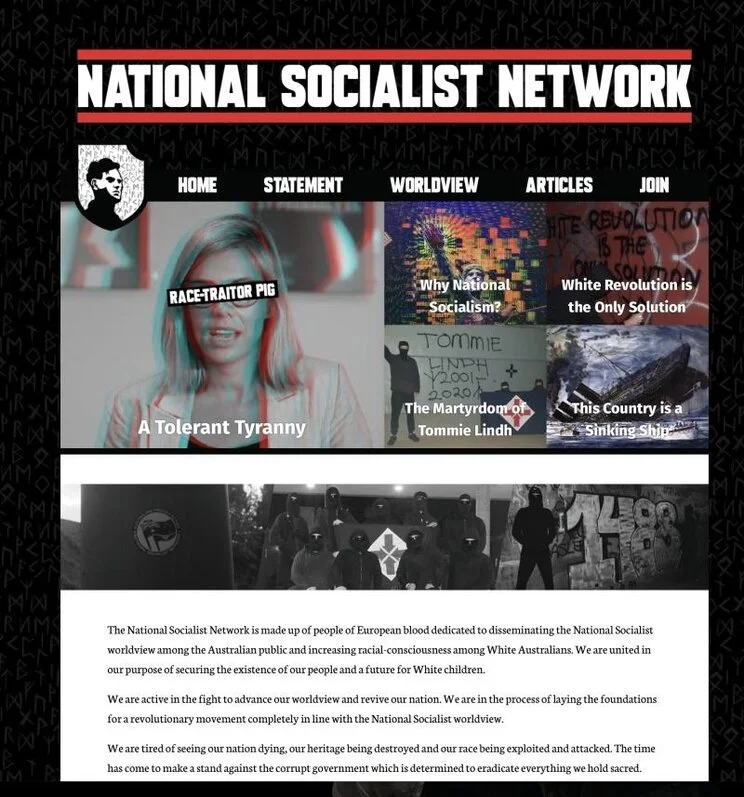 The Australian National Socialist Network is online again : “ The National Socialist Network is made up of people of European blood dedicated to disseminating the National Socialist worldview among the Australian public and increasing racial-consciousness among White Australians. We are united in our purpose of securing the existence of our people and a future for White children…..To survive, White Australians must adopt the revolutionary creed of National Socialism so that one day we can take our continent back from the scum who are occupying and destroying it.”